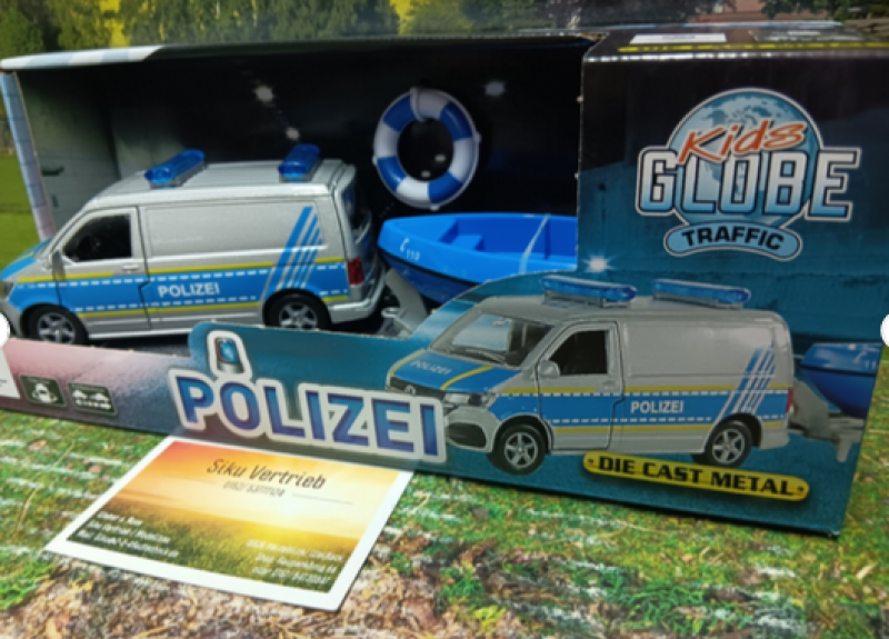 Kids Globe VW Polizei mit Rettungsboot,Spielset,metall/kunstst.neu in OVP