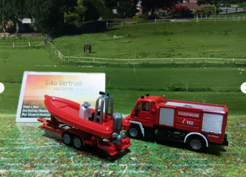 Unimog Feuerwehr mit Bootsanhänger und abnehmbarem Feuerwehrboot(schwimmfähig)