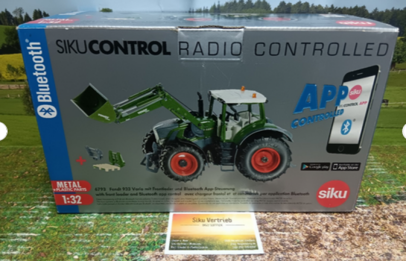 App kostenlos herunterladen, Bluetooth-Verbindung aktivieren und los geht der Spielspaß. Mit der neuen SIKUCONTROL APP kann der Fendt 933 Vario mit Frontlader mit dem Smartphone und dem Tablet (Android- und iOS-Technologie) gesteuert werden. Alternativ wird der Traktor auch im Set mit dem Bluetooth Fernsteuermodul angeboten. Die Traktoren der Baureihe Fendt 900 Vario gehören zu den erfolgreichsten im Segment der Großtraktoren. Das SIKUCONTROL-Modell aus Metall und Kunststoff zeichnet sich nicht nur durch die zahlreichen Features, sondern auch durch die bei Fans so geschätzte Detailliebe. Alle Funktionen und die fünf Getriebe des Traktors lassen sich über die kostenlose App steuern. Wahlweise über die virtuelle Gamepad-Steuerung oder die Bewegungssensoren der mobilen Geräte. Dieses intuitive Feature ist eine willkommene Abwechslung und bietet zusätzlichen Spielspaß. Mit der App ist präzises Rangieren genauso möglich wie das Steuern der Frontlader, der Anhänger von Joskin und Fortuna oder dem Pflug von Vogel & Noot. Wie beim Steuermodul lassen sich zudem das Fahrlicht an der Motorhaube, die Arbeitsscheinwerfer an der Kabine, die Heckblinker und die Rundumleuchten schalten. Die SIKUCONTROL APP bietet Traktorfans zusätzlich wissenswerte Informationen über den Fendt 933 Vario. Für den Traktor kann zudem ein Name angelegt werden. Die Einstellung und Funktionen der App werden laufend aktualisiert. Mit der OTA(Over-The-Air)-Funktion der App kann die Software im Traktor direkt upgedated werden. Alternativ zur SIKU APP kann der Traktor auch mit dem Bluetooth Fernsteuermodul gesteuert werden, welches separat unter 6730 erhältlich ist.